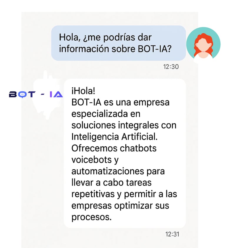 ✅Claro. BOT-IA diseña soluciones conversacionales adaptadas a cada negocio permitiendo reflejar el tono, procesos y necesidades específicas de cada empresa.