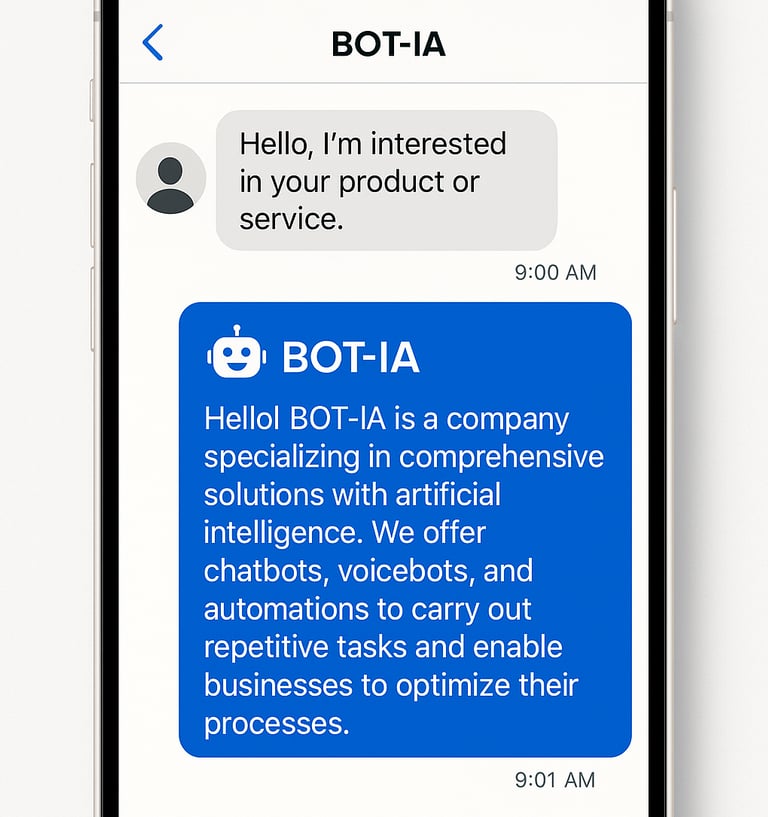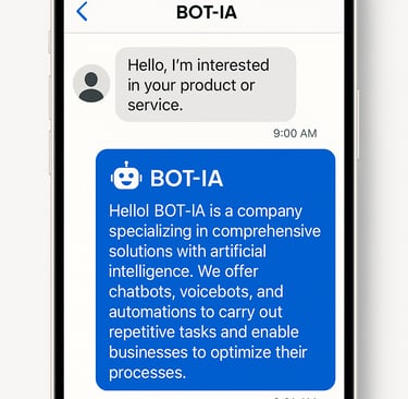 ✅Of course. BOT-IA designs conversational solutions adapted to each business, allowing it to reflect the specific tone, processes and needs of each company.